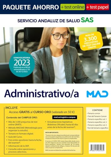 Paquete Ahorro Test PAPEL + Test ONLINE Administrativo/a Servicio Andaluz de Salud full version