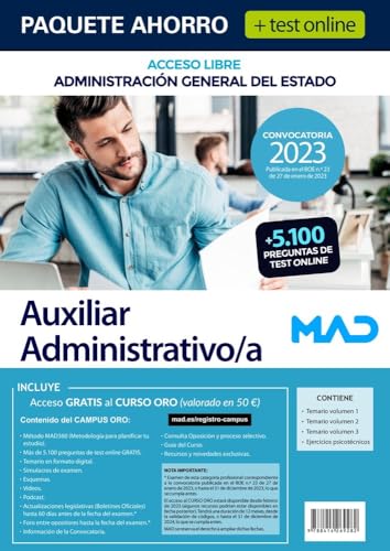 Paquete Ahorro + Test online Auxiliar Administrativo/a Administración General del Estado. Ahorra 61 full version
