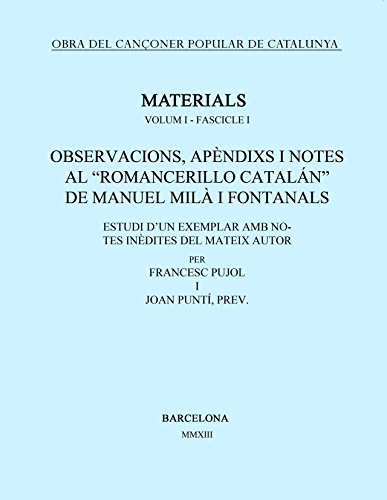 Obra del Cançoner Popular de Catalunya. Volum I. Fascicle 1. Observacions, apèndixs i notes al "Romancerillo Catalán" de Manuel Milà i Fontanals full version