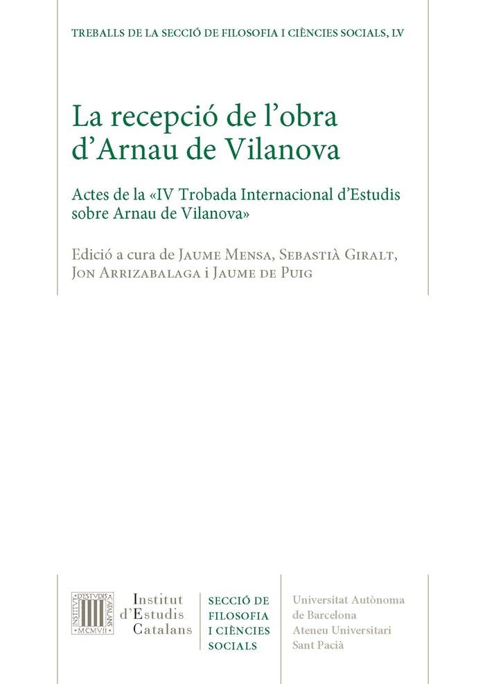La recepció de l'obra d'Arnau de Vilanova: Actes de la «IV Trobada Internacional d'Estudis sobre Arnau de Vilanova» full version