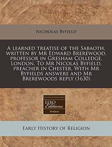 You are about to access our book library "A learned treatise of the Sabaoth, written by Mr Edward Brerewood, professor in Gresham Colledge, London. To Mr Nicolas Byfield, preacher in Chester. ... answere and Mr Brerewoods reply (1630) full version"