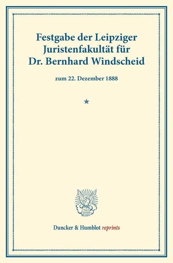 Festgabe Der Leipziger Juristenfakultat Fur Dr. Bernhard Windscheid: Zum 22. Dezember 1888 (Duncker & Humblot Reprints) (German Edition) full version