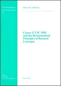 Canon 17 CIC 1983 and the Hermeneutical Principles of Bernard Lonergan (Tesi gregoriana, Serie Diritto Canonico 32) (Tesi Gregoriana: Diritto) full version