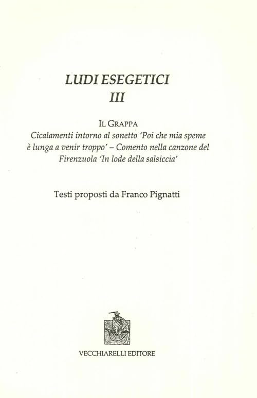Ludi esegetici III. Il Grappa. Cicalamenti intorno al sonetto 'Poi che mia speme è lunga a venir troppo' : comento nella canzone del Firenzuola 'In lode della salsiccia'. full version