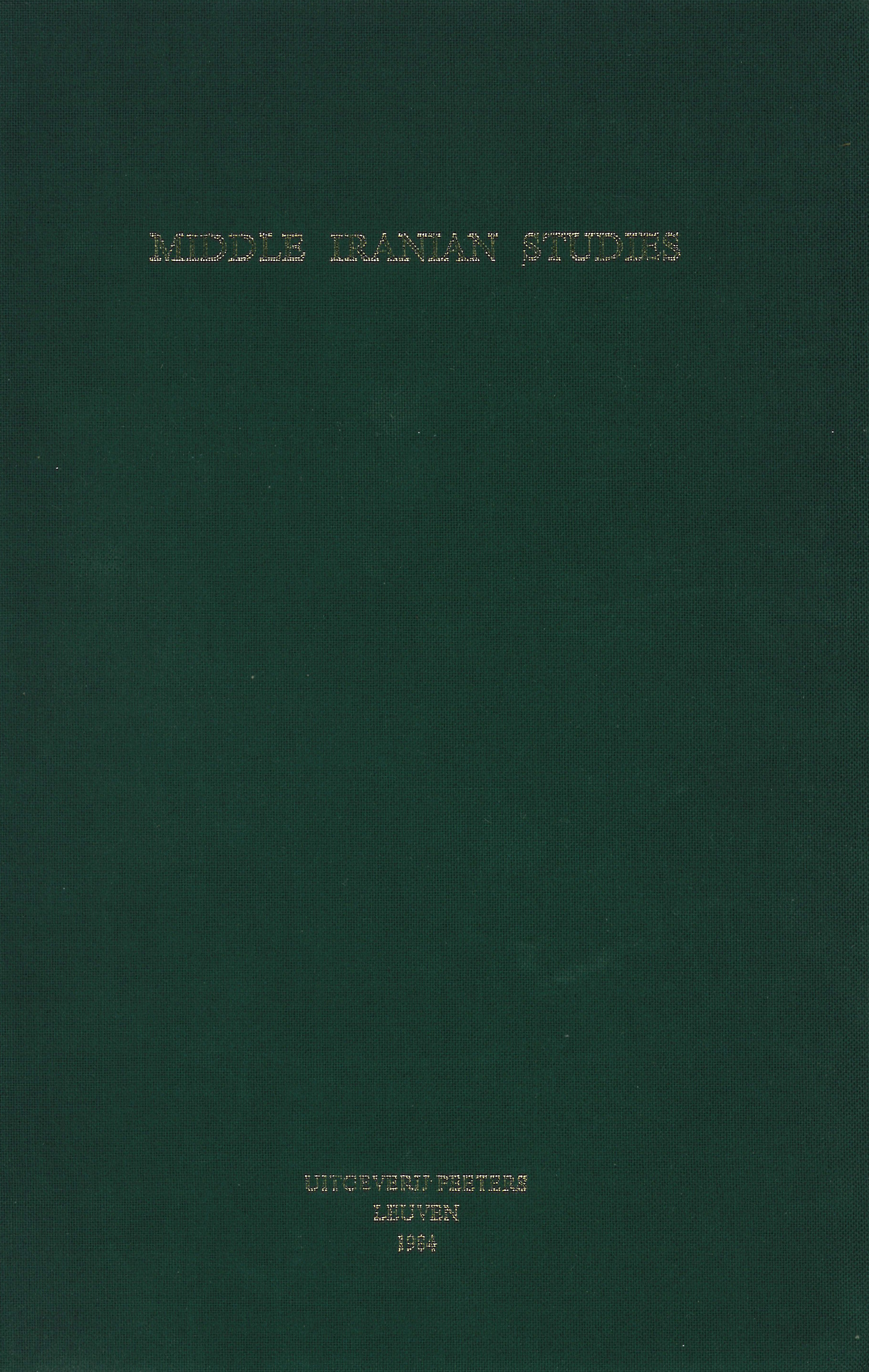 Middle Iranian Studies. Proceedings of the International Symposium Organized by the Katholieke Universiteit Leuven from the 17th to the 20th of May 1982 full version