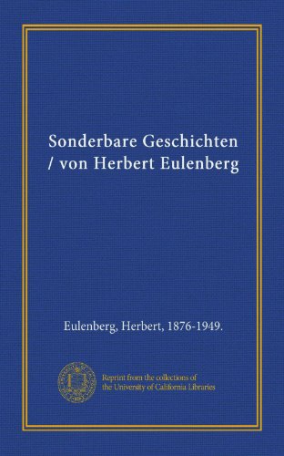 Sonderbare Geschichten / von Herbert Eulenberg (German Edition) full version