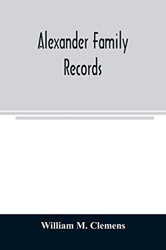 Alexander family records: an account of the first American settlers and colonial families of the name of Alexander, and other genealogical and ... wills and marriages heretofore unpublished full version