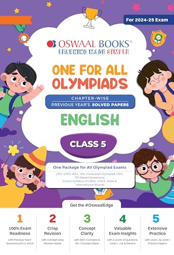 Oswaal One For All Olympiad Class 5 English | Previous Years Solved Papers | For 2024-25 Exam full version