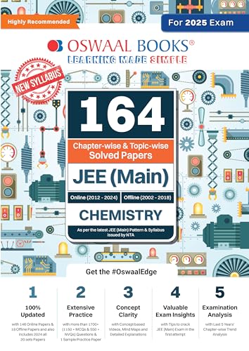 Oswaal 164 Chapter-wise & Topic-wise Solved Papers JEE (Main) | Online (2012-2024) & Offline (2002-2018) | Chemistry | For 2025 Exam full version