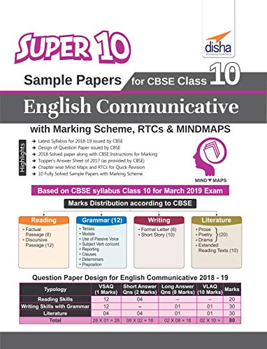 Super 10 Sample Papers for CBSE Class 10 English Communicative with Marking Scheme, RTCs & Revision Notes full version