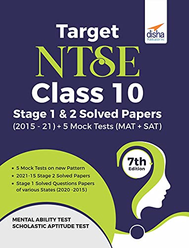Target NTSE Class 10 Stage 1 & 2 Solved Papers (2015 - 21) + 5 Mock Tests (MAT + SAT) 7th Edition full version