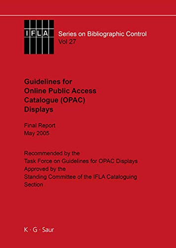 Ifla Guidelines for Online Public Access Catalogue (Opac) Displays: Final Report May 2005 full version
