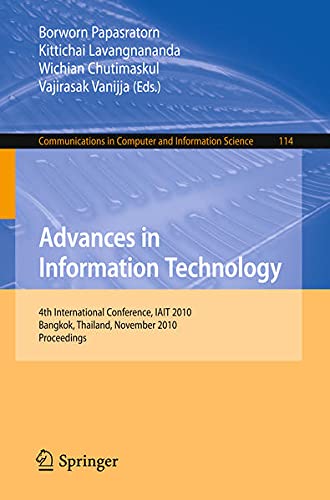 Advances in Information Technology: 4th International Conference, IAIT 2010, Bangkok, Thailand, November 4-5, 2010, Proceedings (Communications in Computer and Information Science Book 114) full version