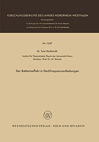 Der Batterieeffekt in Hochfrequenzentladungen (Forschungsberichte des Landes Nordrhein-Westfalen 1547) (German Edition) full version