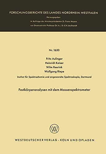 Festkörperanalysen mit dem Massenspektrometer (Forschungsberichte des Landes Nordrhein-Westfalen 1650) (German Edition) full version
