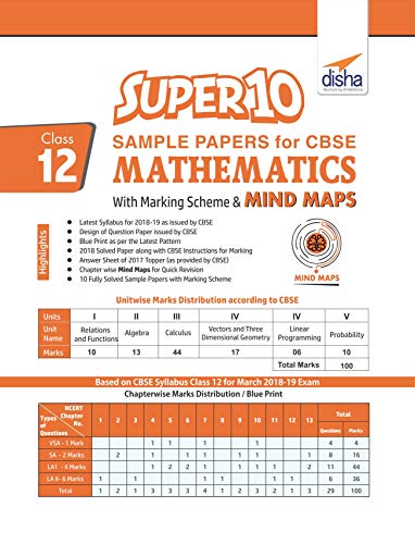 Super 10 Sample Papers for CBSE Class 12 Mathematics with Marking Scheme & MINDMAPS full version