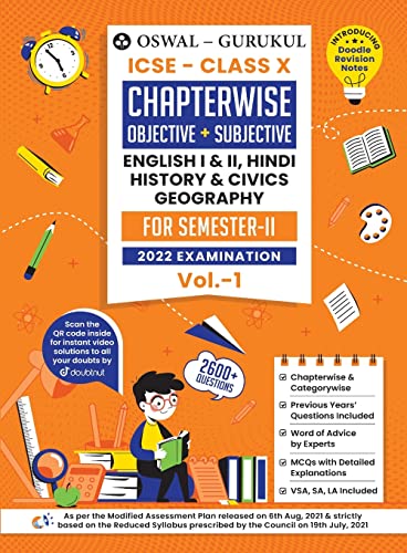 Oswal-Gurukul Chapterwise Objective + Subjective Vol I for English I, English II, Hindi, Civics, History & Geography: ICSE Class 10 for Semester II 2022 Exam full version