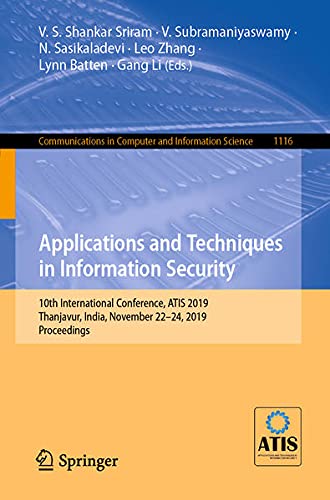 You are about to access our book library "Applications and Techniques in Information Security: 10th International Conference, ATIS 2019, Thanjavur, India, November 22–24, 2019, Proceedings (Communications ... Computer and Information Science Book 1116) full version"