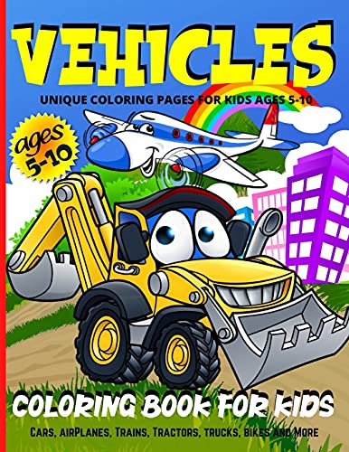 Vehicles Coloring Book For Kids: Transportation Coloring Book For Boys And Girls - 50 Fun Illustrations With Cars, Trains, Tractors, Big Trucks, Airplanes And More full version